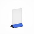 МЕНЮХОЛДЕР ФОРМАТА А-6, С НИЖНЕЙ ЧАСТЬЮ РАЗЛИЧНЫХ ЦВЕТОВ, КЛАСИЧЕСКОГО ВИДА. СОСТОИТ ИЗ ДВУХ ЧАСТЕЙ, ПРОЗРАЧНОГО Т-ОБРАЗНОГО ПЛАНШЕТА И НИЖНЕГО ДЕРЖАТЕЛЯ, ТРЕУГОЛЬНОЙ ФОРМЫ. ВОЗМОЖНО НАНЕСЕНИЕ ЛОГОТИПА.