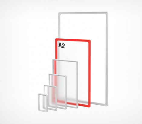 Комплект настенной перекидной системы «POSTERLINE WALL» с рамками «PF», для размещения информации формата А-2 вертикально или горизонтально. Информация легко меняется.