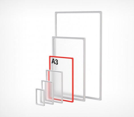 Комплект настенной перекидной системы «POSTERLINE WALL» с  рамками «PF»,  для размещения информации формата  А-3  вертикально или горизонтально. Информация  легко меняется.