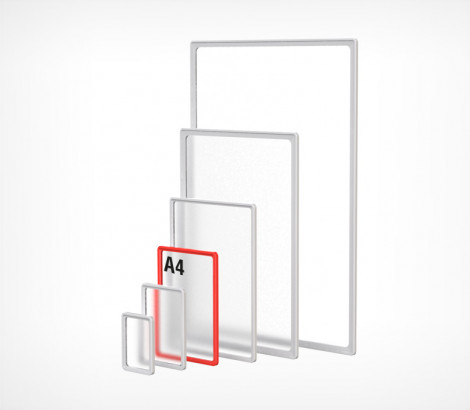 Комплект настенной перекидной системы «POSTERLINE WALL» с  рамками «PF»,  для размещения информации формата  А-4  вертикально или горизонтально. Информация  легко меняется.