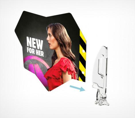 Крепится на полку при помощи профиля PRO30 или T-RAIL. Позволяет разместить стоппер на полке и дополнительно выделить продукт, представить информацию об акции. Для крепления в стоппере необходимо сделать дополнительно отверстия. Толщина вставки от 0,1 до 0,7 мм
