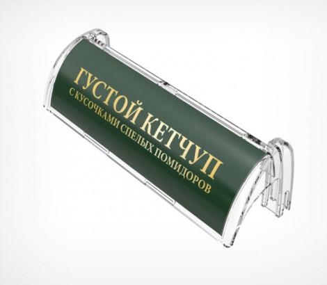 Используется передний профиль с ценникодержателем. Высота рекламной вставки - 30 мм. Имеет Т-профиль для крепления разделителей и толкателей. Крепится на полку на двухсторонний скотч.