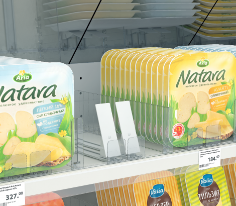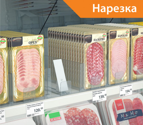Пружинный толкатель FORTA GROSSA-2 имеет наклонную толкающую поверхность размером 44х132 мм с передним прямым ограничителем 55х56 мм. Разработана для товаров в высокой и полутвердой упаковке, с неустойчивым основанием, например: плиточного шоколада, сырной, мясной и рыбной нарезок, упаковок с колготками.