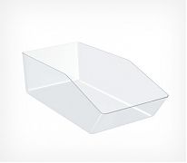 Универсальный малый накопитель для выкладки сыпучих или мелких товаров – оптимальное решение для магазинов формата супермаркет с продажей весовых продуктов, аптек и косметических магазинов в формате самообслуживания и других магазинов, сталкивающихся с выкладкой мелких товаров. Легкая очистка благодаря закругленным углам.