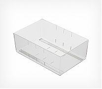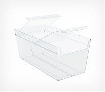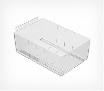 Контейнеры предназначены для выкладки мелких и сыпучих товаров, продающихся в точках розничной торговли в развес. Прозрачные накопители делают выкладку максимально обозримой и эстетически привлекательной для покупателей. Контейнеры разработаны для эффективного использования их как на полках стеллажей, так и на открытых торговых поверхностях ("горках", прилавках и т.п.). Свободный доступ к развесным товарам позволяет покупателям совершать покупки в формате самообслуживания максимально комфортно.
